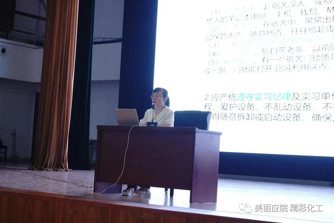 动员会上,茹巧荣老师从实习安全、纠纷的正确处理等几方面详细讲解,同时在会议上明确实习要求,鼓励同学们把握机会,虚心学习,严格遵守企业规章制度,保障自身安全,维护自身权益,努力提高个人综合素质。