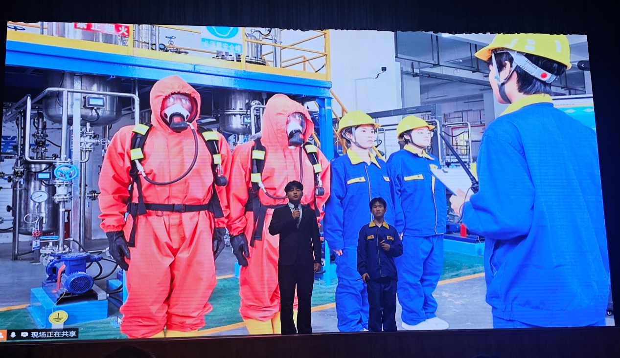 在精彩的现场展示环节中,beat365在线唯一官网以“煤制甲醇工艺分离器法兰泄漏应急处置”为主题,呈现了一场高水平的技能演练。演练模拟了法兰腐蚀引发泄漏的紧急场景,学生团队严格按照现代化工HSE应急处置法则,通过“侦检、隔离、堵漏”标准化流程,迅速控制险情。旁白解说结合LED大屏工艺流程演示,生动展现了化工安全操作的重要性。学生们的精湛技艺和沉着冷静的表现赢得了现场阵阵掌声。