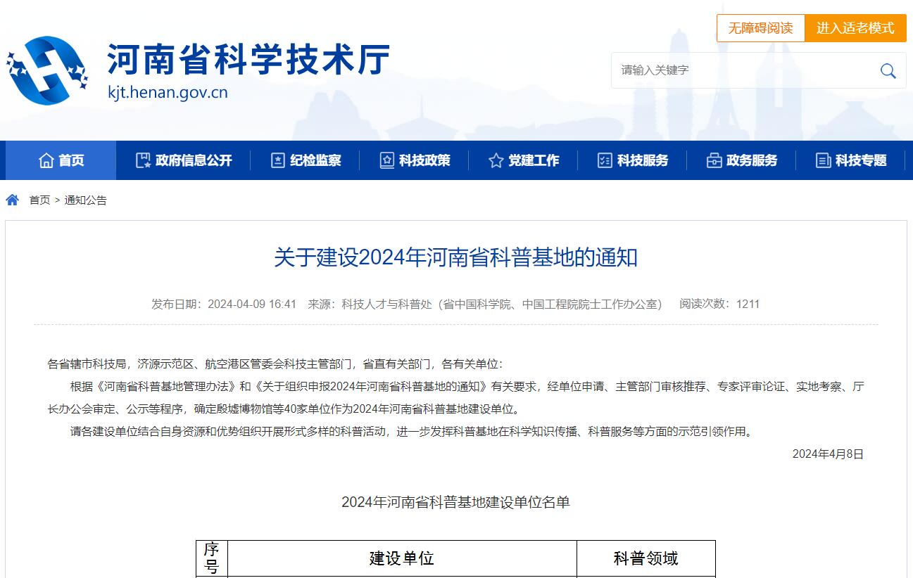 近日,河南省科学技术厅公布了《关于建设2024年河南省科普基地的通知》,beat365官网主导建设的“绿色化工与安全科普基地”成功获批。