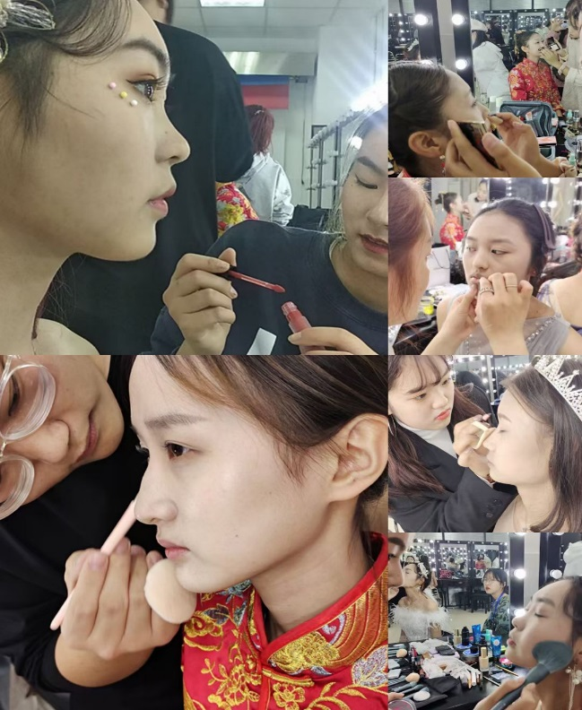 分会场,00后选手们个性张扬,动作娴熟,井然有序,充实展示了自己扎实的基本功。一位选手说:“我现在就跟在宿舍里化妆一样从容淡定,平时练得太多了,化妆已经成为了我生活中的一部分。