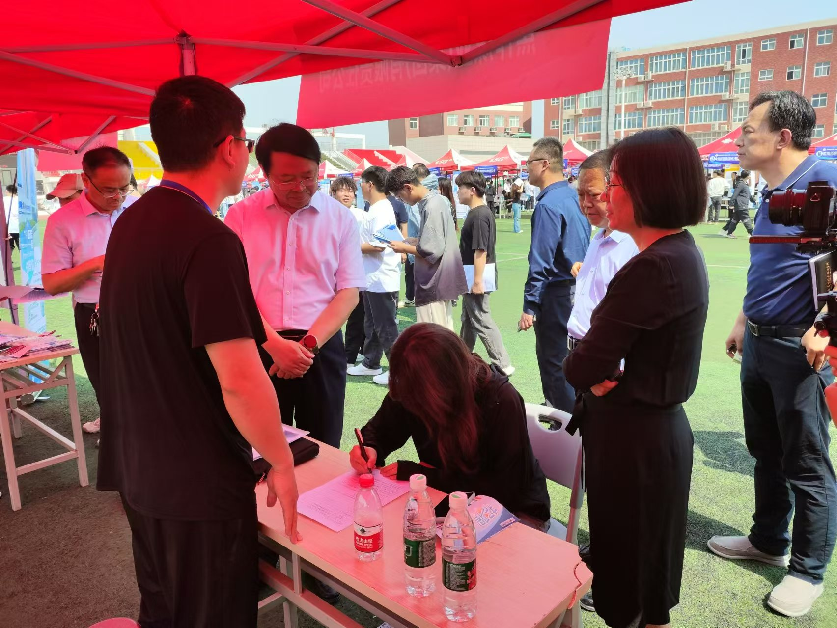 招聘会现场人头攒动,气氛热烈。各家企业纷纷设立展位,展示企业文化、产品特色及岗位需求。学生们穿梭于各展位之间,与企业代表面对面交流,详细了解岗位职责、薪资待遇及发展空间等信息。同时,不少企业还安排了现场面试环节,为学生们提供了更直接的求职体验。
