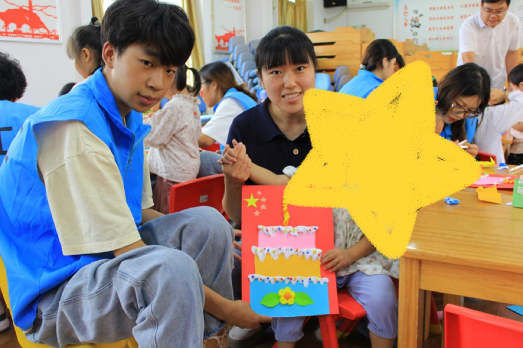 接着进入手工环节,志愿者们通过前期精心准备的彩纸和黏土,带领小朋友们制做生日蛋糕来祝福共和国生日快乐。制作过程中,志愿者们耐心地引导,小朋友们热情高涨,充分发挥自己的想象力和动手能力,用小手将彩纸和黏土变成一个个充满创意的生日蛋糕作品,这些蛋糕色彩斑斓、造型独特,每一个都饱含着对祖国母亲的深深祝福,现场沉浸在一片欢乐且充满爱国情怀的氛围之中。