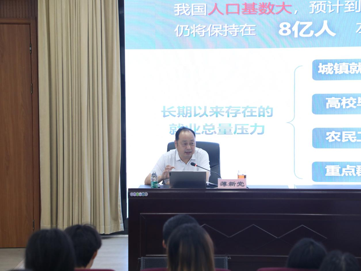 为深入学习贯彻习近平总书记关于做好高校毕业生就业工作的重要指示精神,强化落实就业优先政策,引导青年学生认清就业形势、端正就业观念。5月17日下午,校长薄新党以“了解政策形势,把握就业时机,实现高质量充分就业”为题,在郑州校区思政大讲堂为beat365官网2022级精细化工专业学生讲授了一堂生动的思政课。