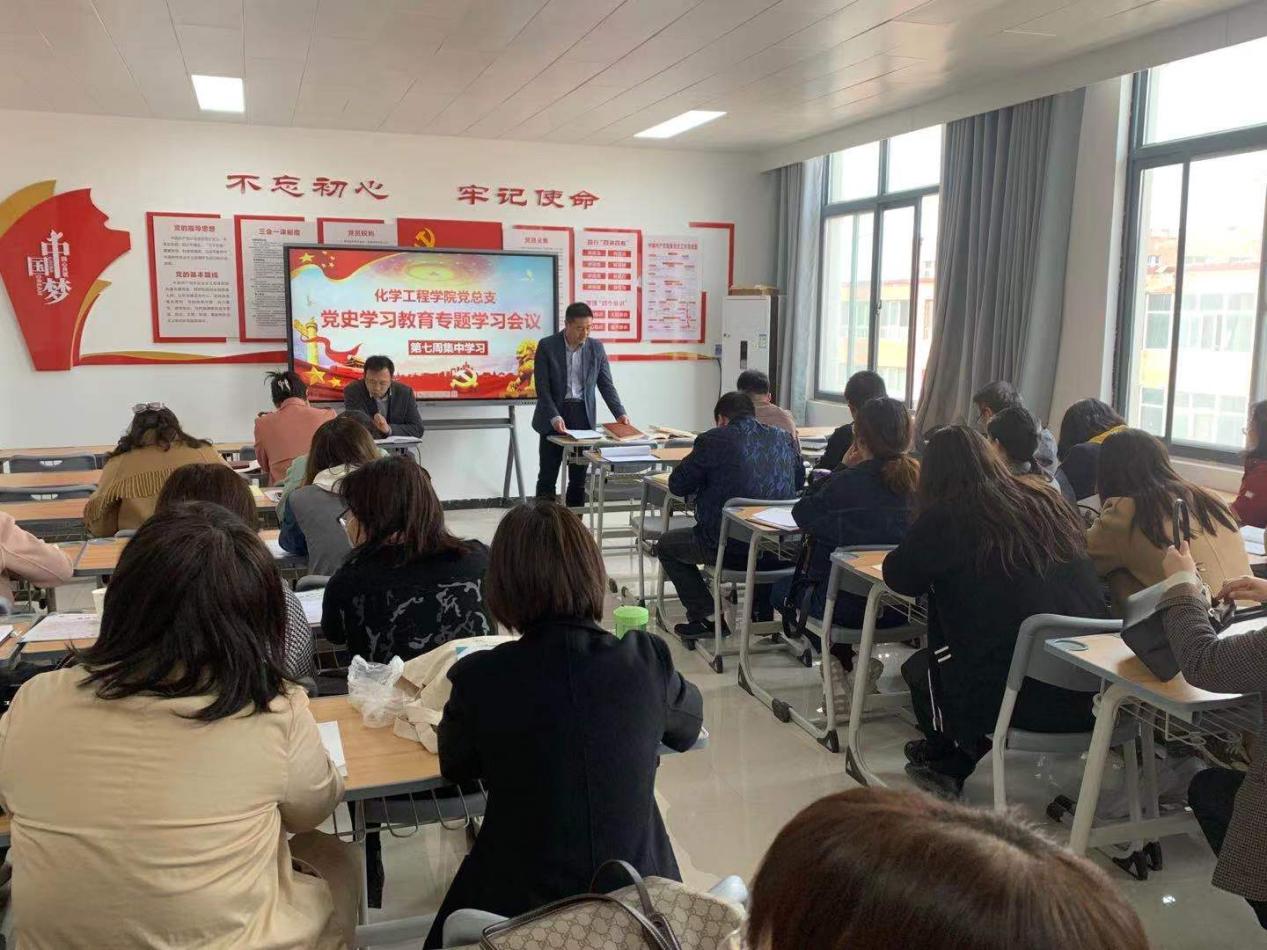 4月20日,化工学院党总支在A512党员活动室开展第7周党史学习教育专题集中学习,会议由总支书记蔡庄红主持。
