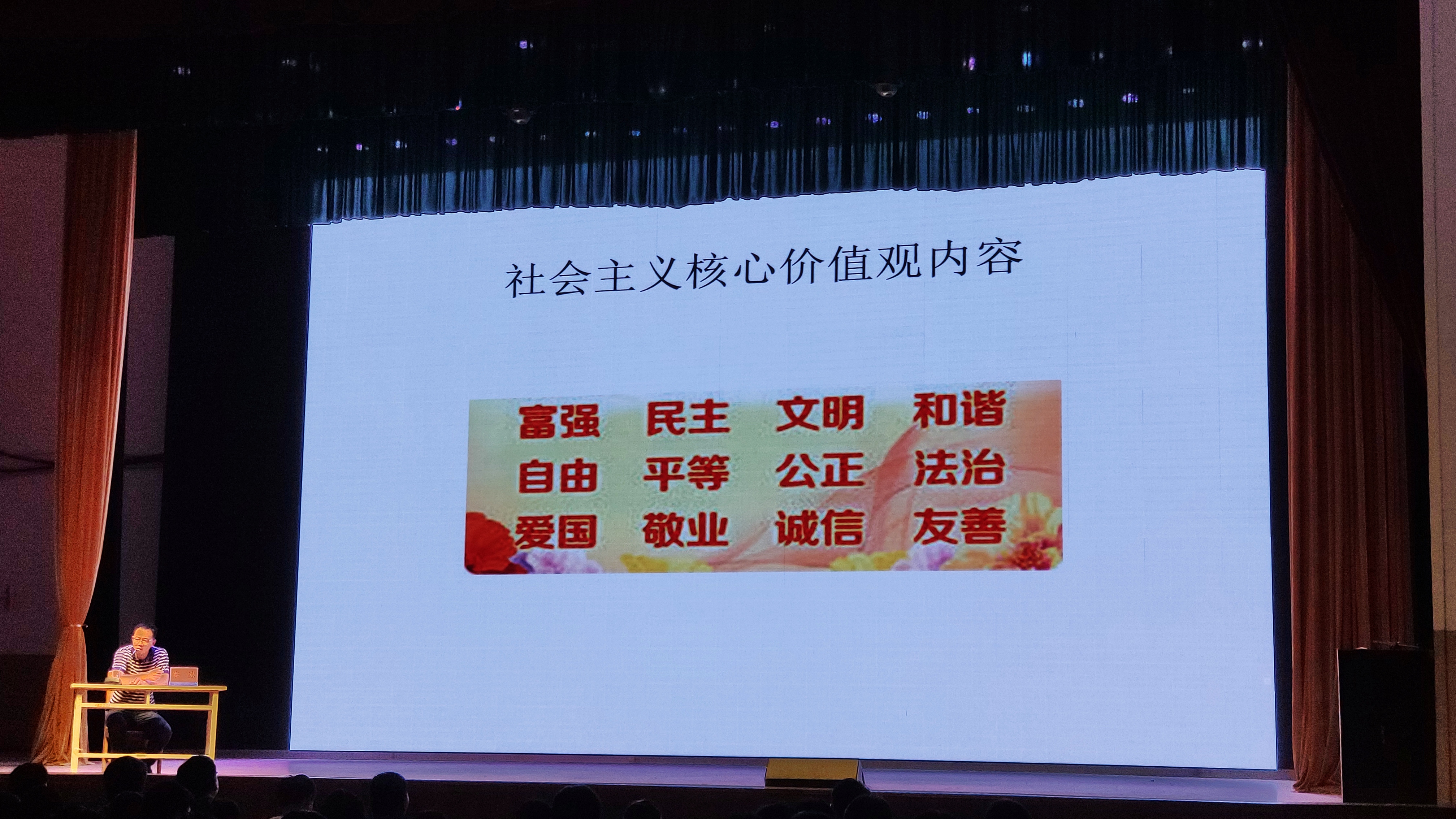 宣讲中,朱冰副书记从为什么要经常讲社会主义核心价值观、社会主义核心价值观是什么、怎样理解和树立社会主义核心价值观、大学生应当从那些方面入手培养社会主义核心价值观四个方面做了讲述。