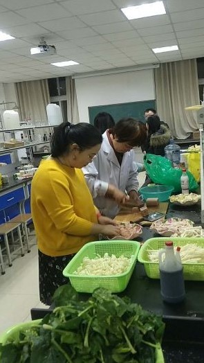 beat365在线唯一官网全体教师在E610、611组织迎冬至包饺子。活动中大家有的负责洗菜、有的负责调馅、有的负责包和煮,共同参与,共同互动,气氛热烈。