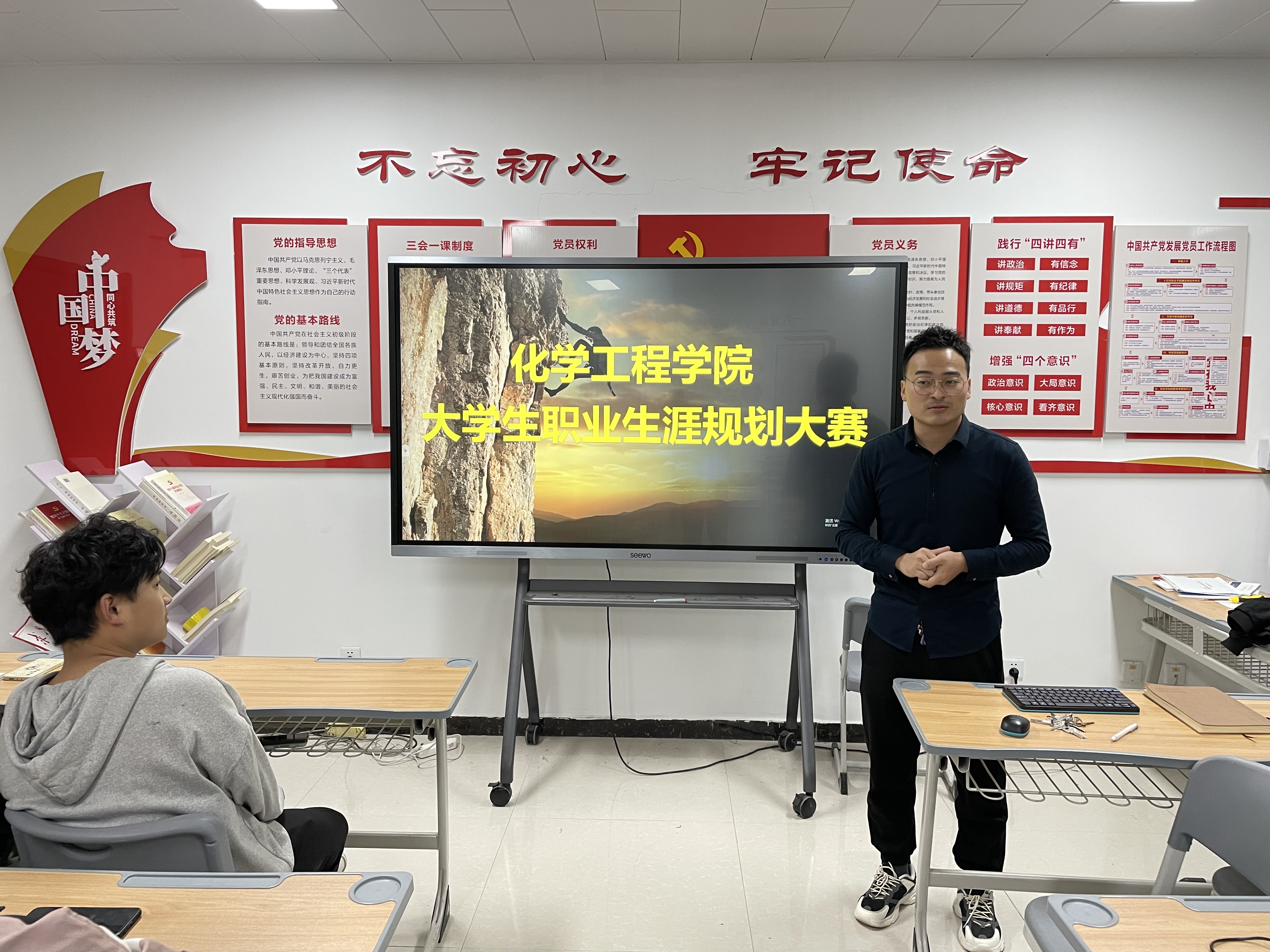 为引导beat365官网学生正确定位自己的发展方向,鼓励大学生树立正确的人生观、价值观、就业观,提高自身的综合素质和就业创业能力。beat365在线唯一官网于11月16日下午在A楼512举办大学生职业生涯规划初赛暨学校职业生涯规划大赛选拔赛,团总支书记刘海龙、学生会各部负责人观看了比赛。
