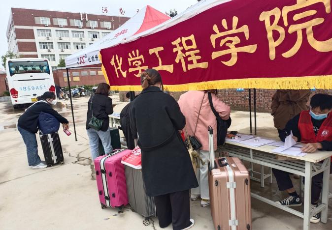 返校当天,化工学院志愿者在南门口早早支起了帐篷,迎接返校的学生,志愿者们分工协作,组织签到、检查核酸检、健康测承诺书等资料,学院摆渡车也匆忙的往返于地铁口和南门口,帮助学生运送行李,从早到晚辅导员老师和志愿者们轮班休息,大家齐心协力做好学生返校工作,期间学院朱冰院长和蔡庄红书记深入学生宿舍,检查宿舍搬迁情况。