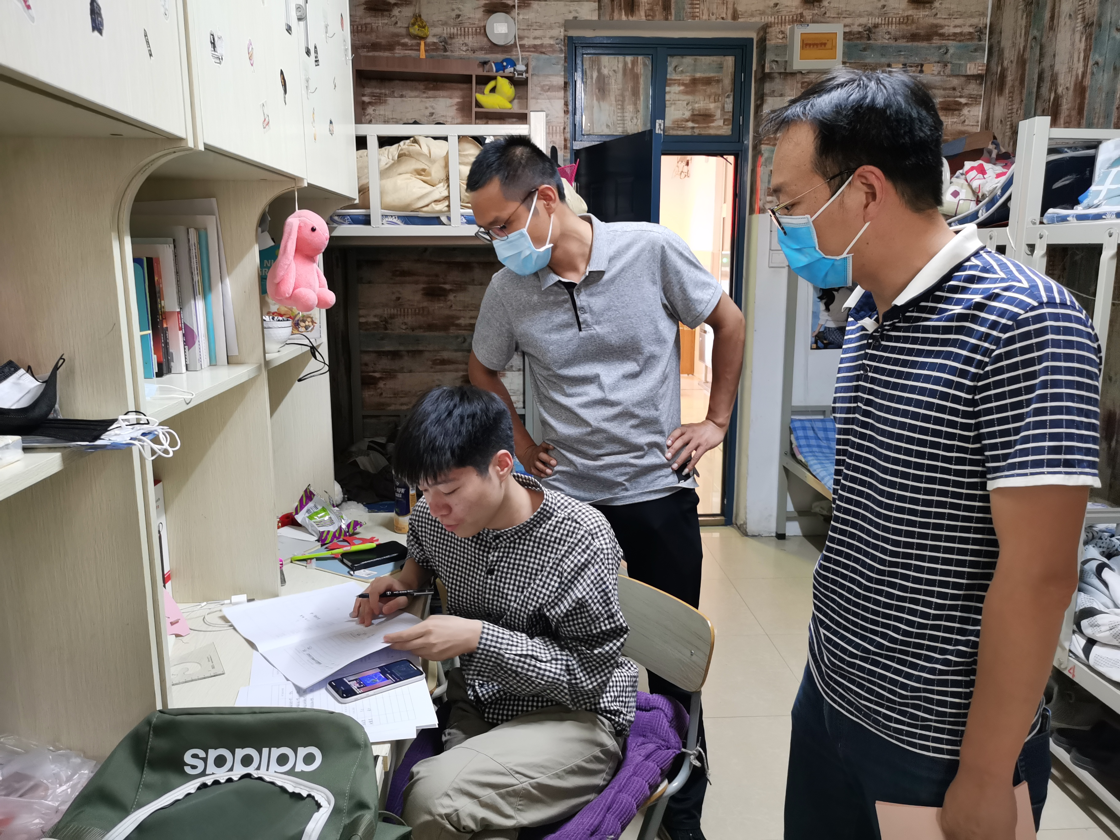 在学生宿舍,学院领导仔细检查了宿舍卫生和安全情况,详细了解各宿舍返校情况,与同学们进行了亲切的交流,听取了同学们对学校疫情防控的意见,了解学生的思想动态,询问了同学们疫情期间的学习、企业应聘等情况。