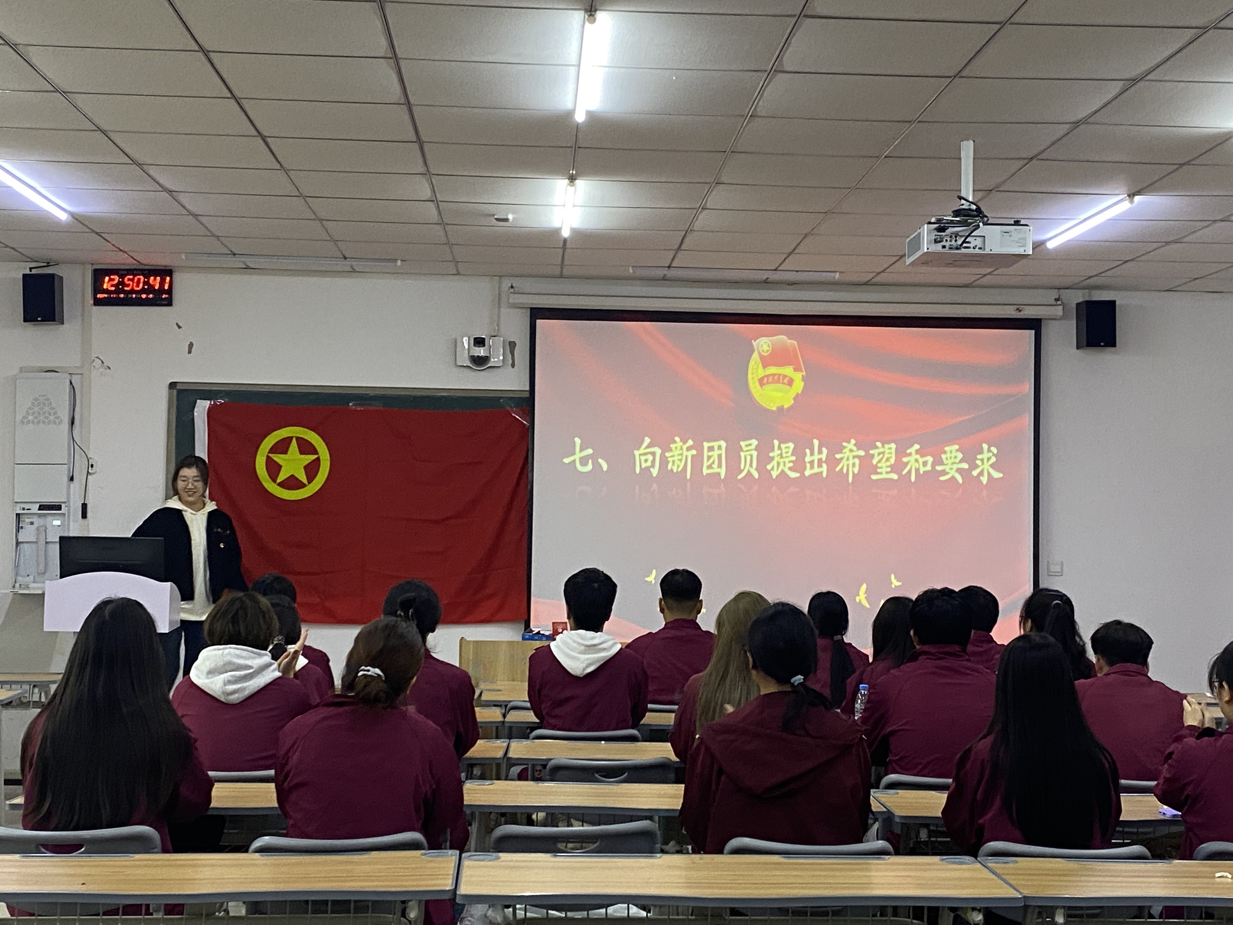 宣誓后,新团员代表牛博远发言,向团组织表达他们加入团组织的初衷和决心,将时刻铭记自己共青团员的身份,严格要求自己。