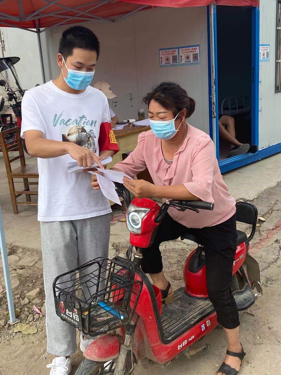 因为现在商丘疫情比较严重,在村里边每人两天做一次核酸,需要人在旁边维持秩序,她帮助老年人和没智能手机的人扫码填资料。疫情期间,在村口值守点,提醒村民非必要不外出、做好个人防护工作,每天从早上八点看到晚上九点。她表示:身为一个大学生我应该为祖国做贡献,所以就毫不犹豫报名做了志愿者,为人民服务