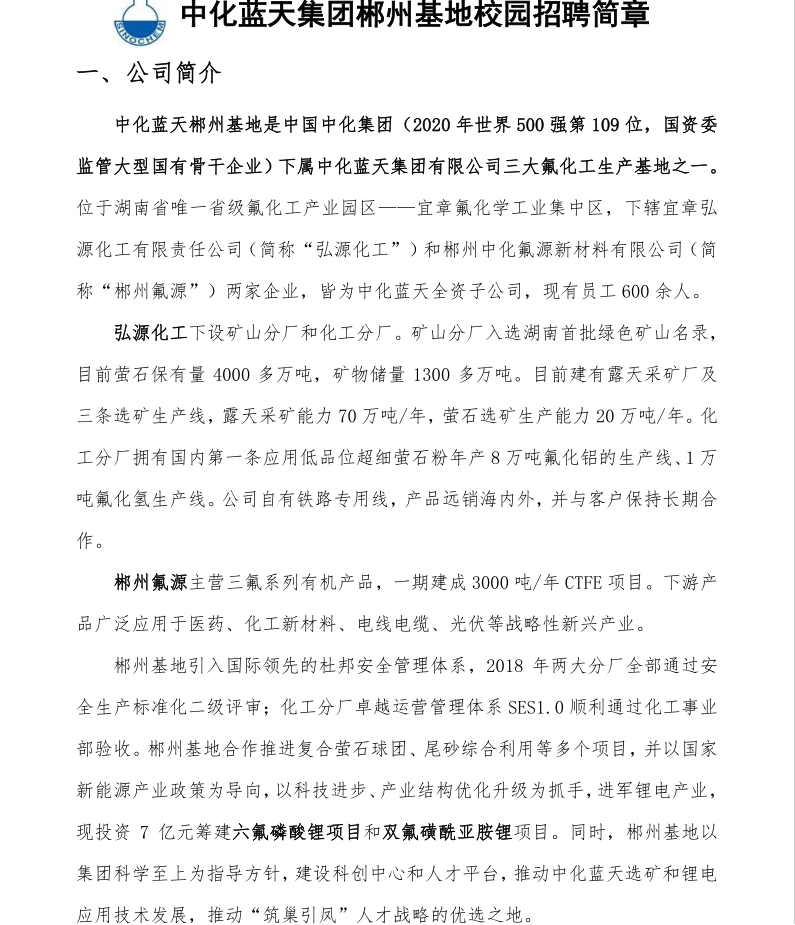 上一条:中化蓝天新干基地招聘简介 下一条:湖北中蓝宏源新能源材料有限公司简介