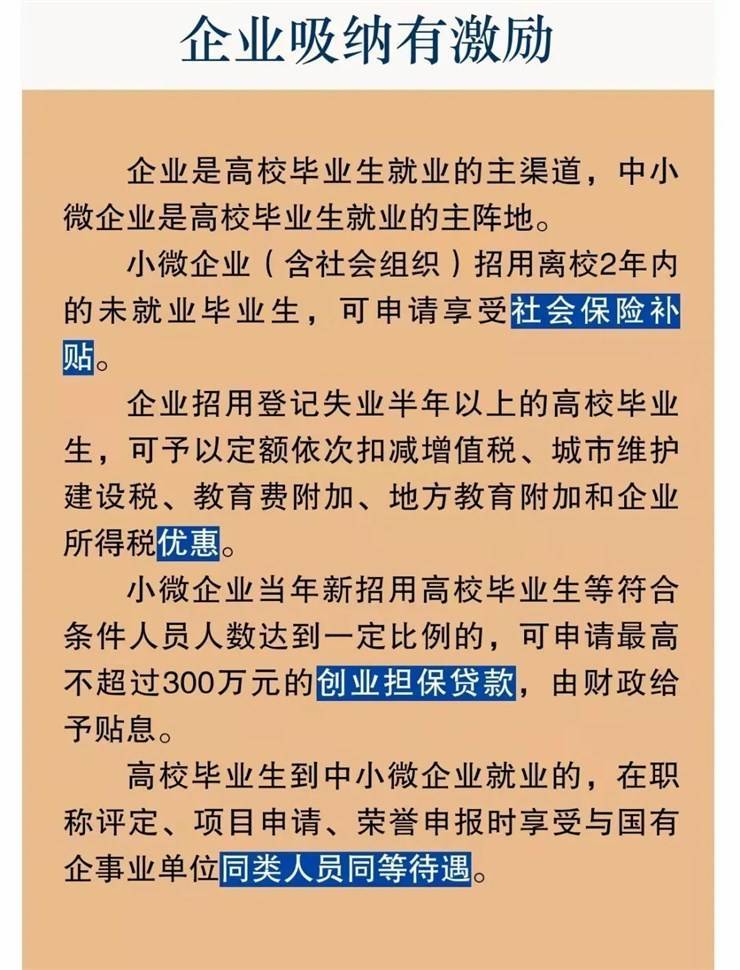高校毕业生就业创业的政策措施