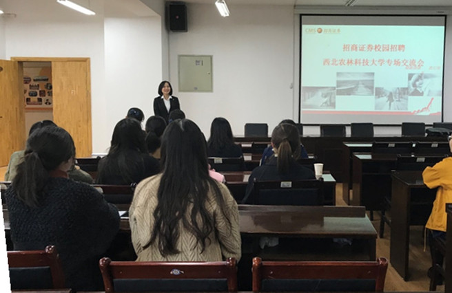 为了给2018届毕业生提供更多、更好的就业机会, 10月12日下午,招商证券股份有限公司西安北大街营业部2018届专场招聘会在必赢76net线路唯一官方网站C401会议室召开,特邀营业部田星辉经理为同学们宣讲,2018届毕业生积极参加,表现出极高的热情。