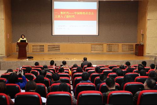 随后邓谨教授作了“新时代的政治宣言和行动纲领”的报告。她诙谐幽默的授课风格帮助大家进一步理解了十九大报告提出的新思想、新战略、新征程、新使命等方面内容,解读我们进入了中国特色社会主义新时代,社会主要矛盾也发生了相应变化,意味着中华民族从站起来、富起来到强起来的伟大飞跃,意味着科学社会主义在中国焕发出强大生机活力,意味着中国特色社会主义道路、理论、制度、文化不断发展。中国梦是历史的、现实的,也是未来的,中华民族伟大复兴的中国梦终将在一代代青年的接力奋斗中变为现实。