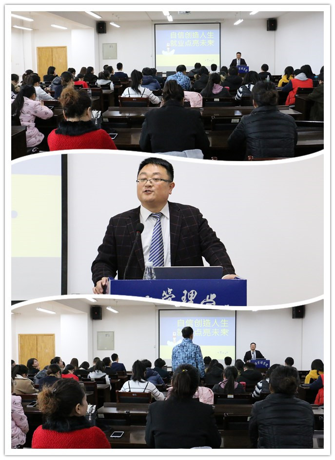 为缓解大学生就业压力,更好地走出校园,实现自我价值,积极接触并适应社会。11月23日下午,于经管学院C401会议室召开“自信创造人生就业点亮未来”就业分享会,特邀人寿保险公司总监徐忠昌主讲,2015级保险专业全员参与,同学们认真听讲,反响热烈。