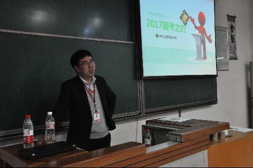 为助力11月份参加国家公务员考试的毕业生充分备考,“稳准狠”地进行最后冲刺,10月25日下午,中公教育陕西研究院三院院长张小林受邀为必赢官网学生做题为“2017国考之约”的考前冲刺报告会。100余名学生聆听此次报告。