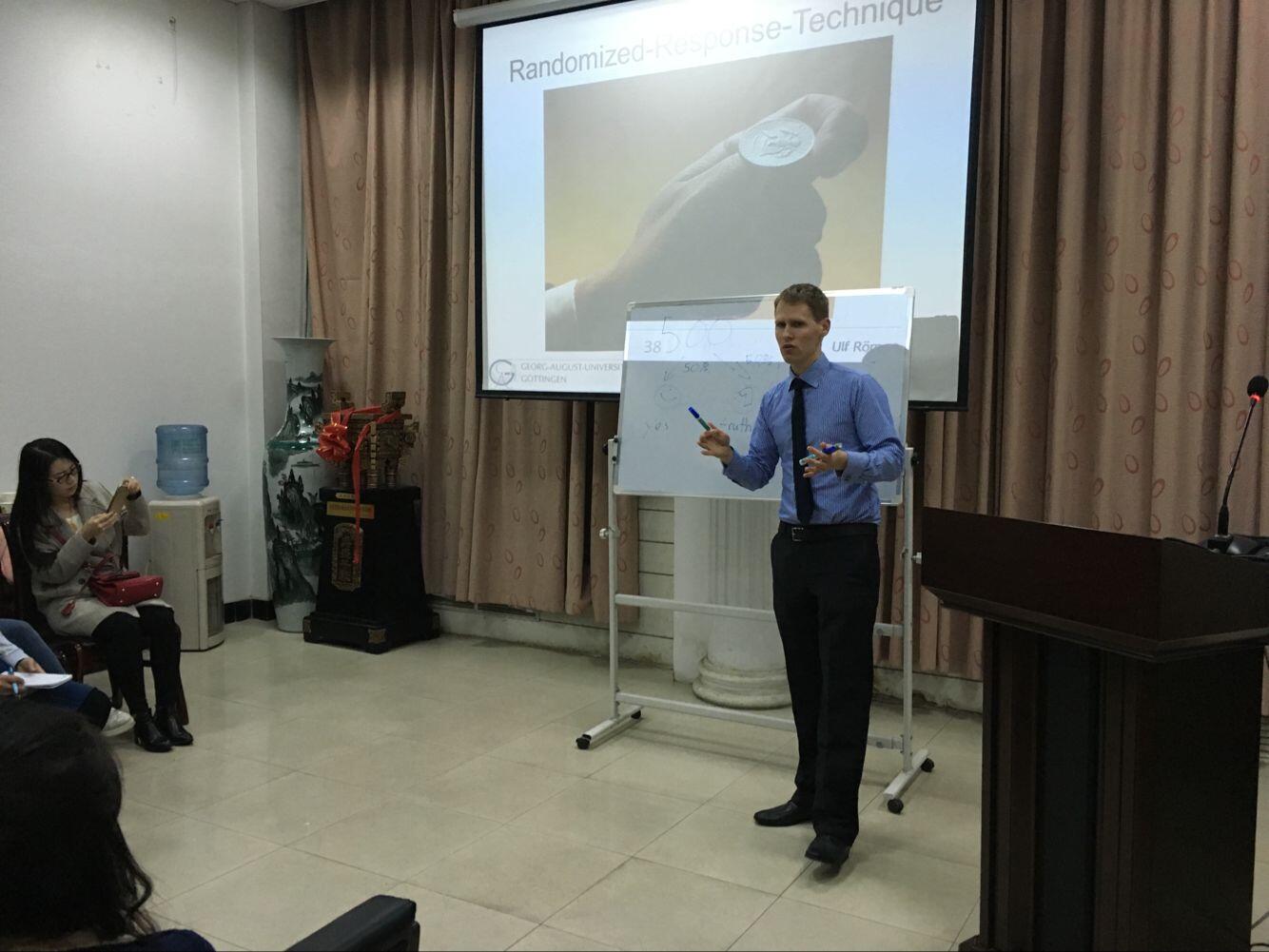 27日,Turvey教授和Ulf博士应邀在601会议室为必赢官网部分青年教师和博硕士研究生分别作了“Insuring Agricultural Loans with Risk-Contingent Credit”和“How does asymmetric information in individual microfinance”的学术报告,回答了师生的相关提问,并就相关研究领域的热点问题与必赢官网师生进行交流探讨。两位专家开放的授课风格,前瞻的研究视角,新颖的计量方法,使与会师生深受启发。