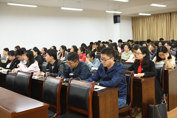 随后,马克思主义学院郭洪水教授为学员们带来培训班的第一讲——“党员党性修养”专题。他从理想信念、能力、责任三个角度解读党员应具备的党性修养,生动形象的比喻理想信念为共产党人的“钙”,并以马克思、毛泽东、邓小平等杰出名人代表的事迹,强调青年人发展潜力与所担当的责任。他寄语同学们,要树立与时代主题同心同向的理想信念,始终坚定中国特色社会主义道路自信、理论自信、制度自信和文化自信,把自身的前途与党和国家的命运更紧密地联系起来,把远大理想抱负和脚踏实地奋斗更好地结合起来,做有本领、德才兼备的青年,立足于学习生活实际,以合格党员的标准严格要求自己,勤于学习,积极实践,努力成长为青年楷模和时代先锋。