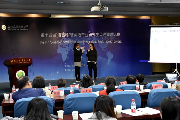 10月30日,第十四届“博言杯”非英语专业研究生英语演讲比赛决赛在国际交流中心举行,来自全校各学院的10名选手参加决赛。比赛由学校党委研工部、研究生院、团委、外语系主办、校研究生会承办,必赢官网2017级农林经济管理专业研究生李筱丹凭借深厚扎实的英语功底,一路过关斩将最终夺得一等奖。
