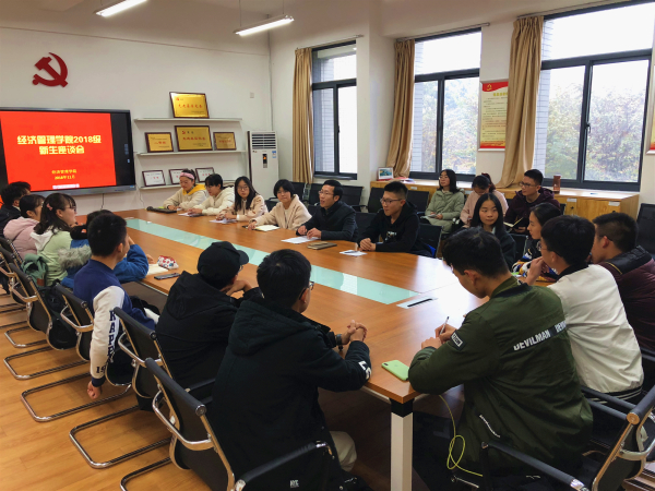 11月12日下午,经管学院于南校区C205会议室召开2018级新生座谈会,学院党委副书记张军驰出席并主持,2018级新生班学生干部参与座谈。