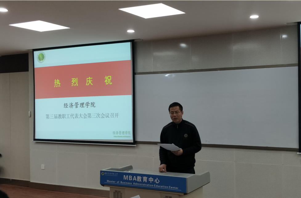 会议首先听取了赵敏娟院长关于2018年学院工作报告,通报了学院2018年目标任务完成情况和财务经费收支情况,重点从师资队伍建设、学科建设、科学研究、人才培养、国际合作与交流、基层党建与学生工作、MBA教育中心等方面总结了学院2018年工作取得的成绩,认真分析了工作中存在的问题和不足,并详细介绍了2019年学院工作要点。最后,赵院长提出在新的一年里,围绕学校重点任务及“十三五”规划核心指标,学院应继续深化校院两级管理体制改革,扎实推进学校“双一流”建设进程,同时立足学院学科建设与卓越创新人才培养为核心,进一步彰显办学特色与优势,推动学院各项事业内涵式发展。