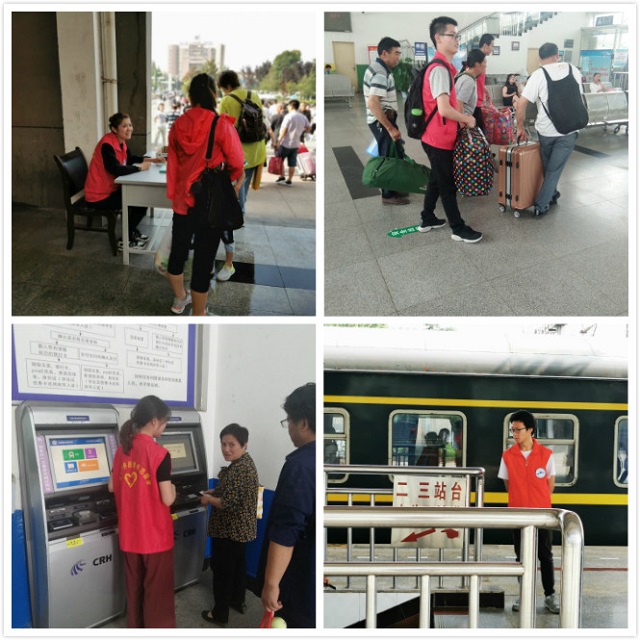 经过前期的协调安排和充分准备,志愿者们很快进入了工作状态。他们身穿红色小马甲,穿梭在络绎不断的人流中。在售票大厅,志愿者们热情帮助老年旅客使用自助售票机购票;在进站安检处,他们有条不紊地帮助乘客将大件行李从安检机的另一端拿出来放好;在候车厅,他们主动帮助工作人员引导乘客有序候车,遇见有行动不便的乘客拿着大件的行李的时候,志愿者们主动帮助乘客搬运行李直至乘客上车;在出站口,他们为出站乘客以及接站人员发放免费的列车时刻表,并为第一次到杨凌的外地旅客详细耐心地指路。尽管天气炎热,但志愿者们干劲十足,充分发扬了胡氏爱心社乐于助人、甘于奉献、敢于担当的美好品质。期间,车站领导前来视察工作,对爱心社的公益活动给予了高度赞扬。